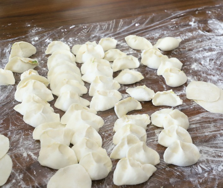 本次“餃子”制作依舊采用傳統(tǒng)的施工工藝:“剁”-“調(diào)”-“拌”-“和”-“盤”-“搟”-“包”。
