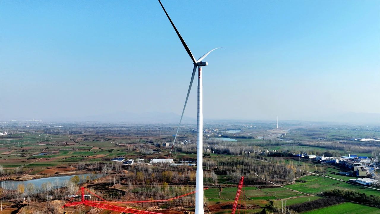 2024年12月31日,大唐桐柏縣安棚100MW風(fēng)電項(xiàng)目首臺(tái)風(fēng)機(jī)成功并網(wǎng)發(fā)電。該項(xiàng)目建成后,每年可為國家節(jié)省標(biāo)煤5.7萬噸,每年可減少排放溫室效應(yīng)氣體CO₂15.7萬噸,減少煙塵3.2噸,減少SO₂排放15.8噸,減少NOx排放25.3噸。